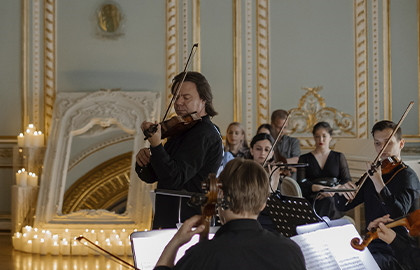 До начала концерта вы сможете посетить экскурсию по особняку и погрузиться в историю одного из самых красивых петербургских домов, который до наших дней сохранил оригинальный фасад и дворцовые интерьеры в стиле классицизма и барокко. Вестибюль парадного входа украшает великолепная парадная лестница из белого мрамора. Каждый из парадных залов имеет свой цвет, резные и расписные потолки, богатое украшение лепным декором. В нескольких залах сохранились изразцовые печи XIX века.
